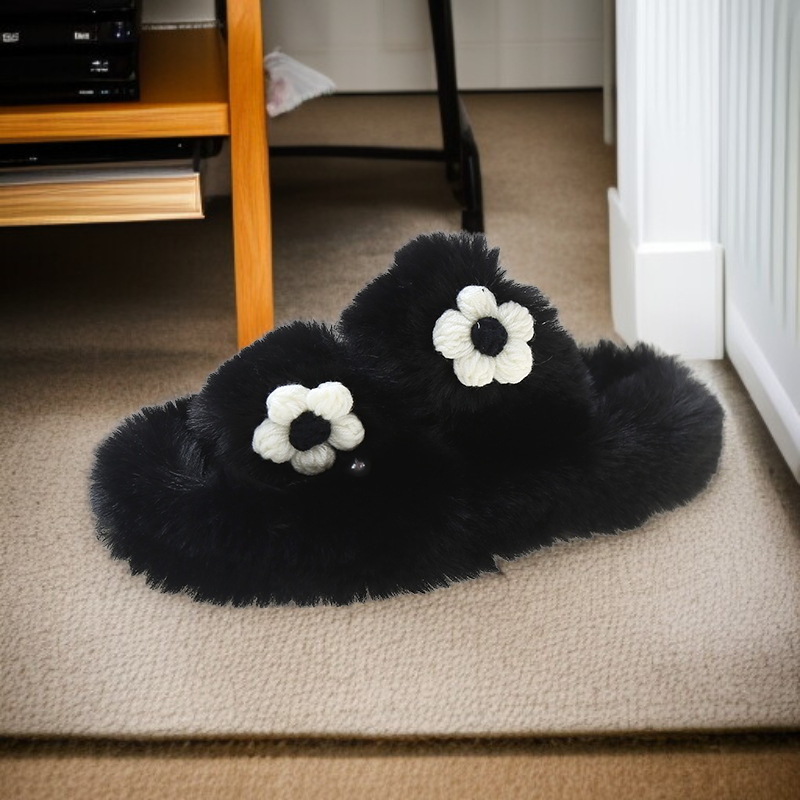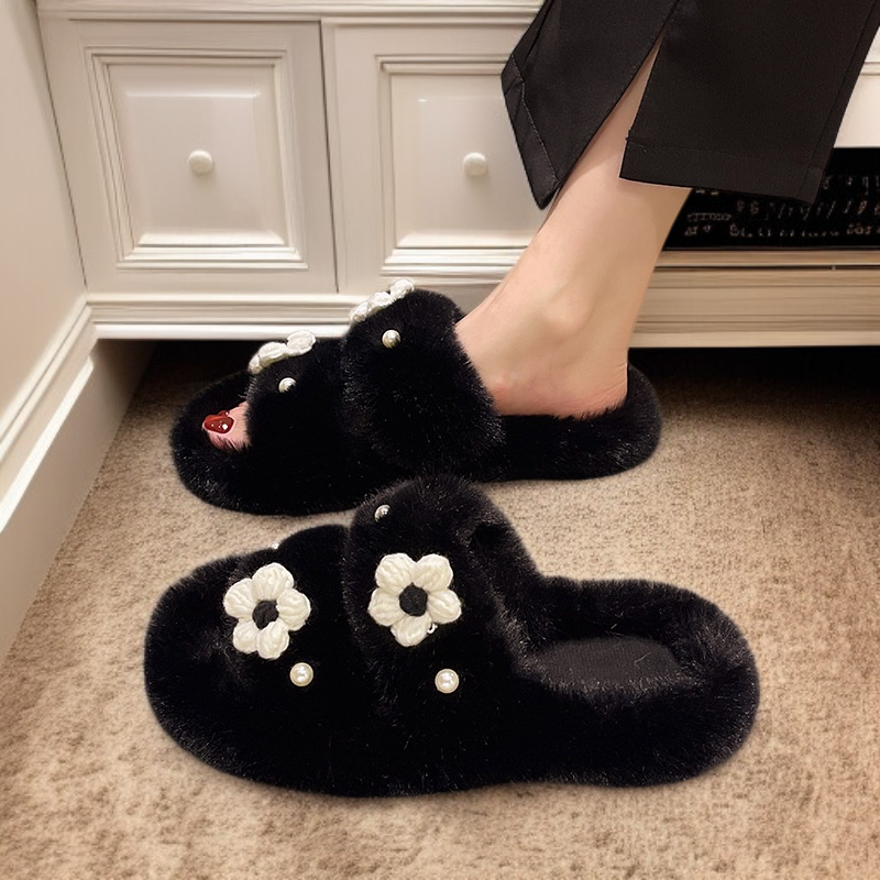 รองเท้าแตะขนเฟอร์สุดนุ่มสไตล์เกาหลี เหมาะสำหรับใส่ในบ้านและฤดูหนาว