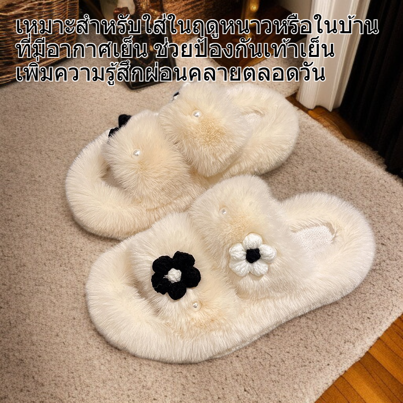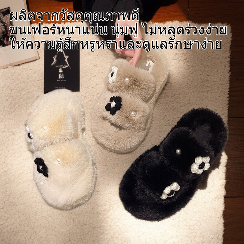 ● รองเท้าแตะขนเฟอร์สุดนุ่ม ดีไซน์สไตล์เกาหลี สวมใส่สบาย ให้ความอบอุ่นเท้าในทุกย่างก้าว เหมาะกับทุกไลฟ์สไตล์ในบ้าน